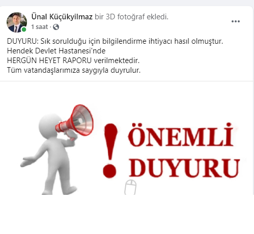 Hendek Devlet Hastanesi Başhekimi Ünal Küçükyılmaz Sosyal Medya Üzerinden Heyet Raporu Konusunda Açıklama Yaptı.