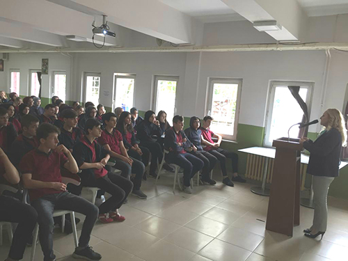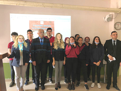 Hendek İlçe Sağlık Müdürlüğünden Uz.Hemşire Deniz De Asis’in Lösemi Hastalığı ile bilgilendirme yaptığı sunumunda özellikle hastalığın tanı ve tedavisi konusunda bilgi sahibi olmanın empati geliştirmenin ve lösemi hastalığı ile mücadele edenlere destek olmanın önemine değindi. Öğrencilerdeki empati duygusunu geliştirmek üzere maske takılarak lösemili bir hastanın kendini enfeksiyonlardan korumak üzere maske kullandığı , löseminin bulaşıcı bir hastalık olmadığı ifade edildi.