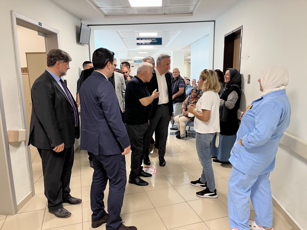 MR ünitesinin ardından patlamada yaralanan Vatandaşları ziyaret eden protokol üyeleri hasta ve yaşlılar ile sohbet ederek diğer programlarına katılmak üzere hastaneden ayrıldılar.