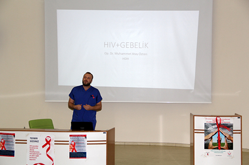 Konferansın ikinci sunumunda Hendek Hastanesi Kadın Hastalıkları ve Doğum Uzmanı Op. Dr. Muhammet Atay Özten gebelik ve HIV virüsü arasındaki anneden bebeğe geçiş ile ilgili bilgilendirmelerde bulundu.