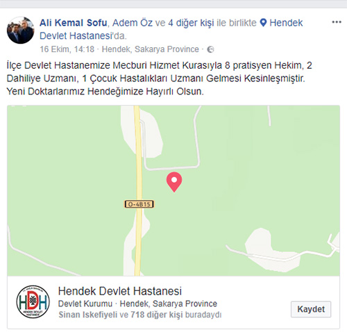 Ak Parti Hendek İlçe Başkanı Ali Kemal Sofu, sosyal medya hesabından yaptığı açıklama ile Hendek Devlet Hastanesine 3’ü Uzman olmak üzere 11 Doktor geleceğinin kesinleştiğini duyurdu.