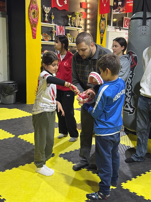 Hendek Şampiyonlar Fıght Spor Kulübü 06-10 yaş grubu sporcularHendek İlçe Sağlık Müdürlüğü bünyesinde görev yapan Diş Hekimi Göktuğ Kurnaz tarafından Ağız ve Diş Sağlığı konusunda sporcu çocuklara diş fırçalama metodları ağız ve diş sağlığı ile ilgili farkındalık, sporda ve günlük hayatta yaşanılan kazalarda diş kaybına uğramış bireylerin yapmaları gereken kurallarla ilgili seminer verildi.