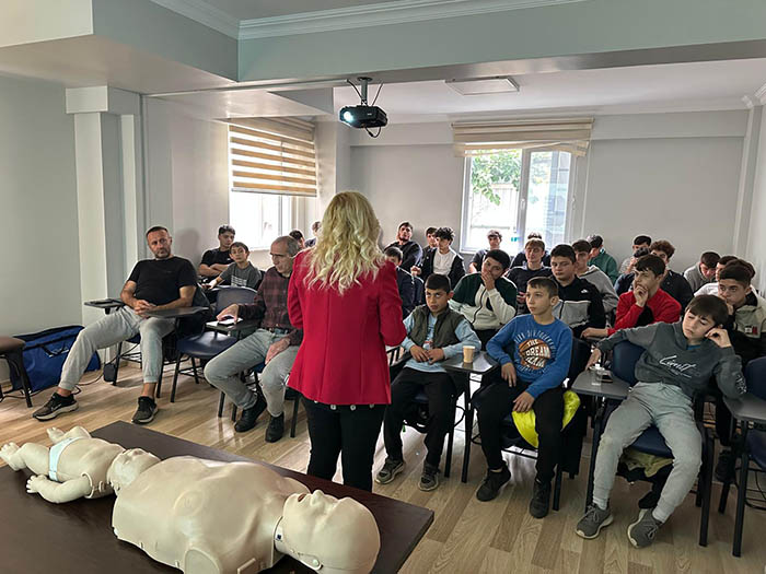 13-15 yaş grubu öğrencilerin ilgi gösterdiği eğitimde fiziksel aktiviteli spor ile ilgilenen gençlerin sağlık bilgisi anlamında bilgi ve beceri kazanmalarının önemine değinilerek riskli durumlarda başa çıkabilecekleri teknikleri öğrenmelerinin önemine vurgu yapıldı.