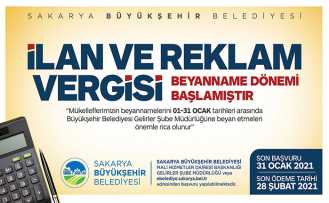 Büyükşehir Belediyesi ilan ve reklam vergi beyannameleri 31 Ocak Pazar gününe denk geldiğinden 1 Şubat Pazartesi günü sona erecek. Yapılan açıklamada, tüm ilan ve reklam vergisi mükelleflerinin 1 Ocak Cuma ve 1 Şubat Pazartesi tarihleri arasında Büyükşehir Belediyesi Gelirler Şube Müdürlüğü’ne ilan ve reklam vergisi beyannamelerini vermeleri gerektiği belirtildi.