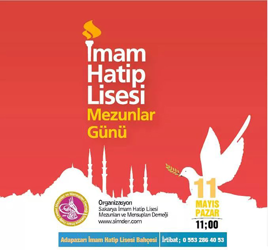 Program ile ilgili açıklamalarda bulunan SİMDER Başkanı Nafi Özdin, “Geleneksel olarak her yıl gerçekleştirdiğimiz etkiliğimize tüm mezunlarımızı ve mensuplarımızı davet ediyoruz. Bu yılki programımızda 1970 yılı Adapazarı İHL mezunu Diyanet İşleri Başkan Yardımcısı Prof.Dr. Hasan Kamil Yılmaz mezun öğrenciler adına konuşma yapacak” dedi. 1956 Yılında kurulan Adapazarı İmam Hatip Lisesi’nin yurt genelinde 20 binden fazla mezunu bulunuyor. Programa okul mezunu olan Cumhurbaşkanı Genel Sekreteri, Şırnak ve Kırşehir Valisi’nin katılması bekleniyor. Mezunlar Buluşması 11 Mayıs Pazar Saat 11.00’da Adapazarı İmam Hatip Lisesi Bahçesinde gerçekleşecek.
