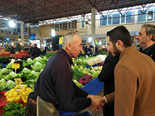 Saadet Partisi Büyükşehir Belediye Başkan Adayı Fahrettin Abay ve Hendek Belediye Başkan Adayı Yasir Yüksek Ticaret Merkezi Salı Pazarını ziyaret etti.