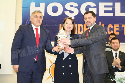 Konuşması sonrası Hendek Belediye Başkanı Ali İnci ve Ak Parti Hendek İlçe Başkanı Ali Kemal Sofu günün hatırası olarak Aile ve Sosyal Politikalar Bakanı Sakarya Milletvekili Ayşenur İslam’a Vazo hediye etti.