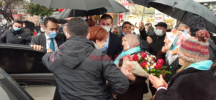 Akşener’i yakından görmek isteyen Vatandaşlar izdiham oluştururken, korona kuralları unutuldu.