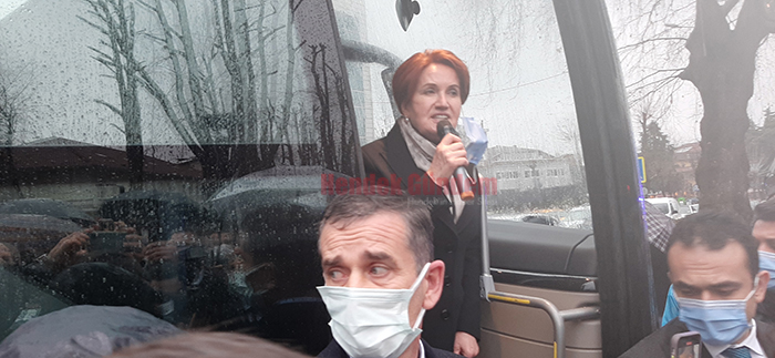 Parti otobüsünden Partililere seslenen Akşener daha sonra Cumhuriyet Meydanında bulunan bazı esnafları dolaşarak esnaflarla sohbet ederek sıkıntılarını dinleyen Akşener daha sonra ilçeden ayrıldı.