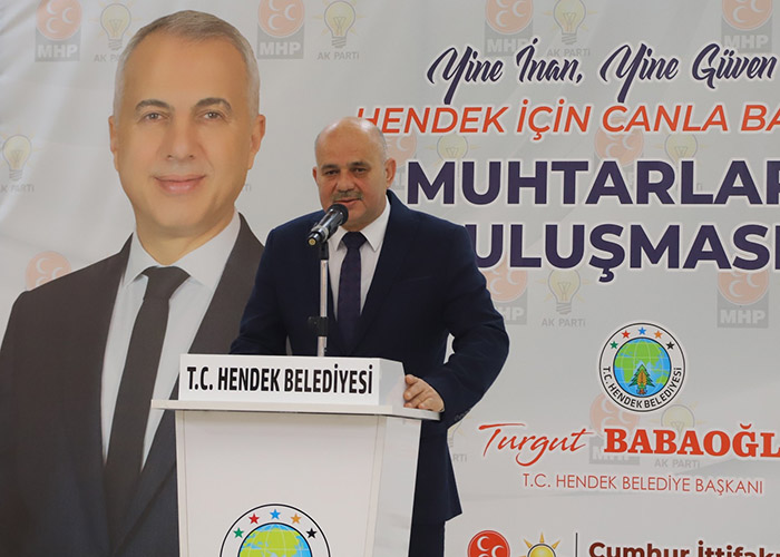 Programda son 5 yılda yapılan hizmetlerin sunumunu gerçekleştiren Hendek Belediye Başkanı Turgut Babaoğlu ise “Bu akşam burada muhtarlarımız ile birlikte azalarımızı ve özellikle ailelerini misafir etmekten büyük memnuniyet duyuyorum. Muhtarlarımız, bizim adeta gözümüz, kulağımız, elimiz ve ayağımız oldular. Bir dönemi beraber yaşadık. Yeni bir döneme İnşallah, aday olanlarla birlikte devam etmek için büyük bir azim ve gayretle mücadele ediyoruz. Yeni dönem hepimize hayırlı ve uğurlu olsun. Muhtarlarımızla ilişkilerimiz de zaman zaman kızdığımız, zaman zaman üzüldüğümüz anlar yaşanmış olabilir ama kimseye hiçbir dargınlığım ve kırgınlığım yok. Sizlerin de varsa bilemiyorum, İnşallah helalleşebiliriz. Şunu özellikle söylüyorum; Kamu işi, devlet işi yapıyoruz. Kimse babasının işini yapmıyor, hepimiz devlet adına, millet adına çalışıyoruz” dedi.