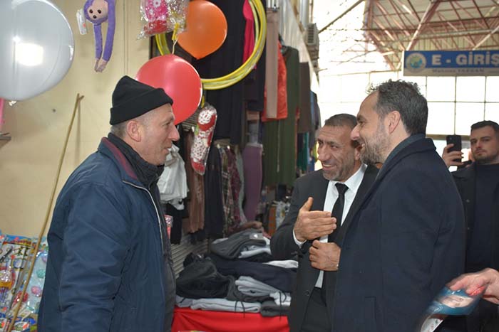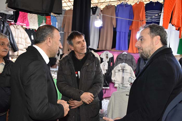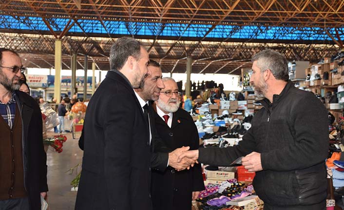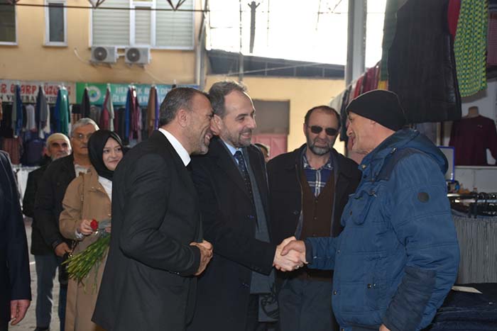 Sadet Partisi Sakarya Büyükşehir Belediyesi başkan adayı Ömer Abdullah Ayhan ve Hendek belediyesi başkan adayı Serdar Büyüker Salıpazarı esnaflarını ziyaret ederek kendilerini tanıttılar.