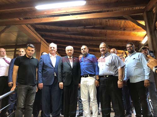 Mola sonunda MHP Genel Başkanı Dr. Devlet Bahçeli, MHP İlçe Başkanı Turgut Babaoğlu ile bir süre görüşerek sohbet etti.