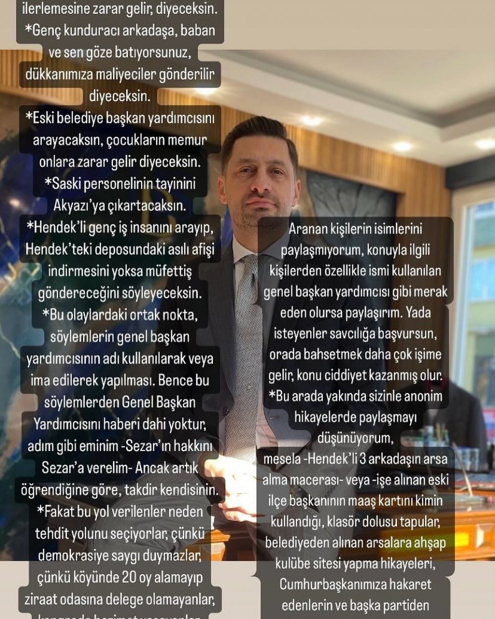Aranan kişilerin isimlerini paylaşmıyorum, konuyla ilgili kişilerden özellikle ismi kullanılan genel başkan yardımcısı gibi merak eden olursa paylaşırım. Yâda isteyenler savcılığa başvursun, orada bahsetmek daha çok işime gelir, konu ciddiyet kazanmış olur.