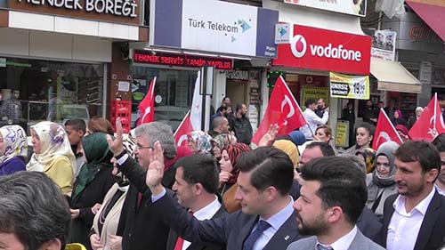 Ak Parti Büyükşehir Belediyesi Başkan adayı Ekrem Yüce’nin de katılım gösterdiği yürüyüşe Ak Parti Hendek Belediye Başkan adayı Ali Kemal Sofu, Ak Parti Hendek İlçe Başkanı Hasan Serdar Baykal ve Yönetimi, MHP Hendek İlçe Başkanı Burhan Namlı ve Yönetimi, Ak Parti'li ve MHP'li Partililer ve vatandaşlar geniş katılım gösterdi.