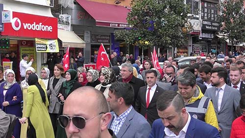 Hendek Gençlik Merkezi (HGM) önünden başlayan yürüyüş korteji Cumhuriyet alanı Muammer Sencer caddesi boyunca devam ederek Ak Parti Hendek binası önün de sona erdi.