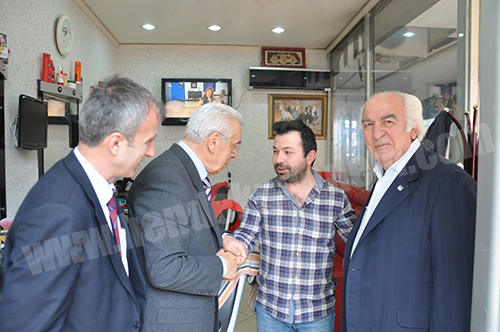 Hasan Fehmi GÜNEŞ ve Belediye başkan adayı A.Selami KARAKADI partililerle birlikte kısa bir esnaf ziyaretinin ardından, İlçe Gençlik Kolları Seçim bürosu önünde halka hitap ettiler.
