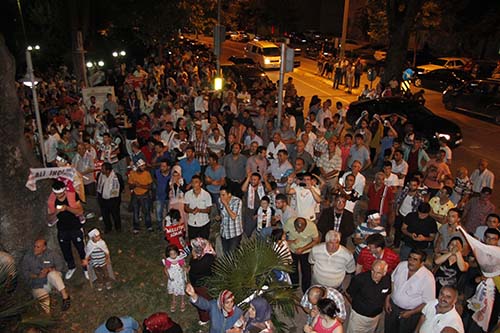 AK Parti Hendek İlçe Teşkilatı önünde toplanan kalabalık yeni Cumhurbaşkanı Recep Tayyip Erdoğan’ın balkon konuşmasını dinledi.