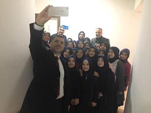 Ziyaretlerde Öğrencilerle eğlenceli vakit geçiren Ali Kemal Sofu Öğrencilerin öz çekim (selfie) isteklerini de kırmadı.