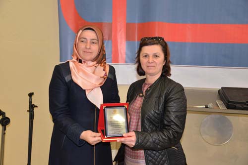 Programda ayrıca kadın girişimci Neşe Yıldız Tüfenk, Fatma İnan ve Rahime Aslıbay’a, girişimcilik yaparak işyeri kurmaları ve bayanlara örnek oldukları için Kadın Kolları Başkanı Emine Tosun tarafından plaket verildi.