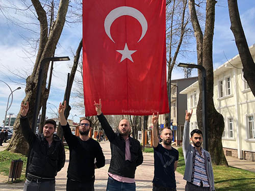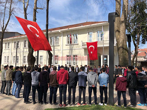 Muammer Sencer Caddesi Hendek Belediyesi önünde İstiklal Marşının kabulü ve Mehmet Akif Ersoy’u anma programı nedeniyle bir araya gelen Hendek Ülkü Ocakları Başkanı Süleyman Kalk ve genç ülkücüler açıklama ve İstiklal marşını okudu.