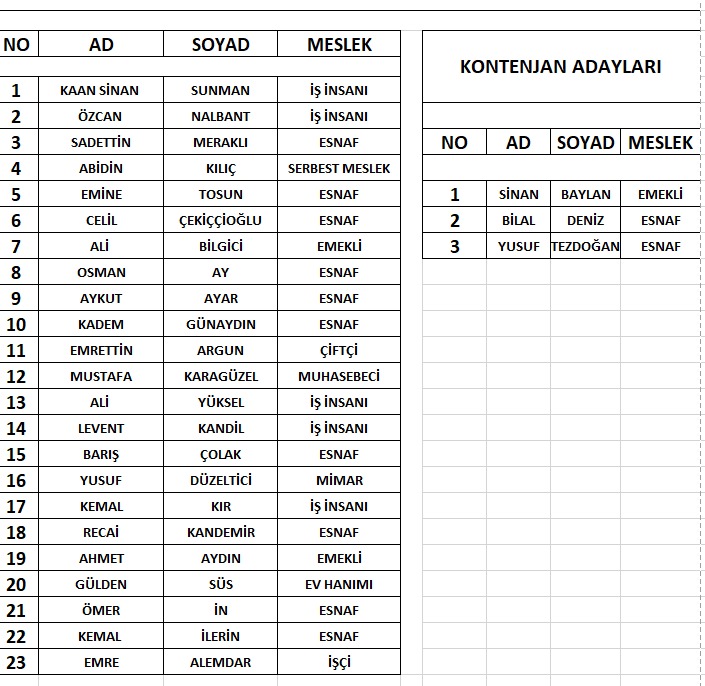 İşte Büyük Birlik Partisi Hendek Belediye meclis üye listesi;