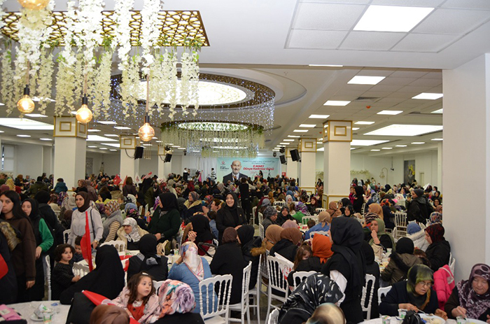 Yoğun bir kalabalık nedeniyle salona zor giren Püsküllü, "Kadınlar Günü'nüz kutlu olsun" diyerek, konuşmasına başladı. Püsküllü, "Bugün, 8 Mart Dünya Kadınlar Günü. Yani sizin gününüz. Kendi gününüzde bu salonu tıka basa dolduran bütün hanım kardeşlerime, ablalarıma, büyüklerime teşekkür ediyorum. Hepinizden Allah razı olsun. Bugün buradaki kalabalık, Allah'ın izniyle 31 Mart'ta emeklerimizin karşılığı olacak. İnşallah o gün sandıkta emeklerimizin karşılığını sizlerin çalışmasıyla alacağız. Sizlerden Allah razı olsun. Allah'ım bizleri mahcup etmesin" şeklinde konuştu.