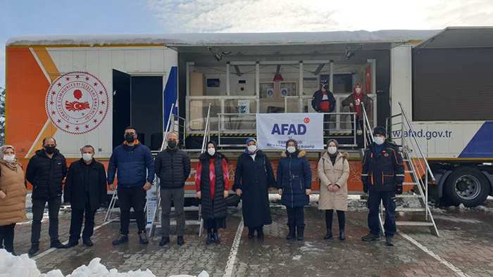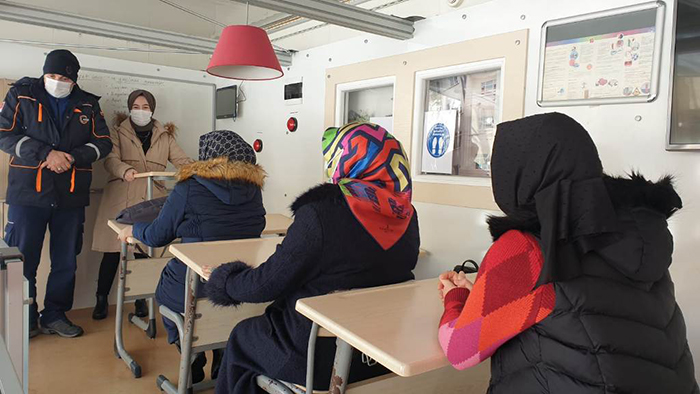 Afet ve Acil Durum (AFAD) simülasyon tırında, vatandaşlara uygulamalı olarak deprem, sel ve yangın eğitimleri vermeye devam ediyor.