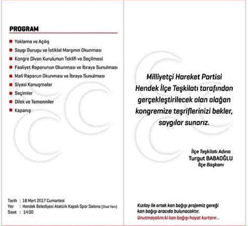 MHP Hendek İlçe Teşkilatının Kapalı spor salonunda düzenleyeceği Kongre saatinde ayrıca Kızılay ile ortaklaşa hazırlanan proje gereği Kan Bağışı aracı da Kapalı spor salonunun bahçesinde yerini alacak.