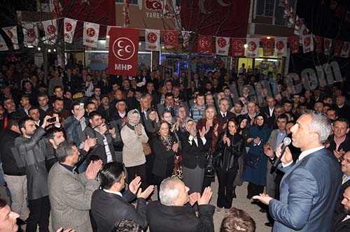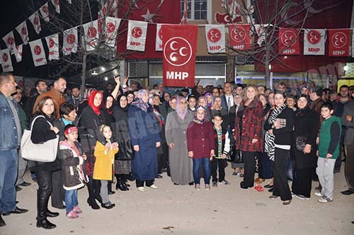 Konuşmanın ardından Babaoğlu,MHP’nin önde gelen isimlerinden Av.Muharrem Bülbül,Av.Ahmet Ay ,Annesi , Babası ve Belediye Meclis Üyesi Adayları ile birlikte SİM açılışını gerçekleştirdiler.