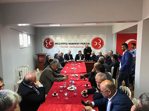 Hendek Tüm Muhtarlar Derneği Başkanı Emin Kula, Yönetimi ve Muhtarlar MHP Hendek İlçe Teşkilatını ziyaretinde MHP İlçe Başkanı Turgut Babaoğlu, Yönetim Kurulu Üyeleri ve Meclis Üyeleri karşıladılar.