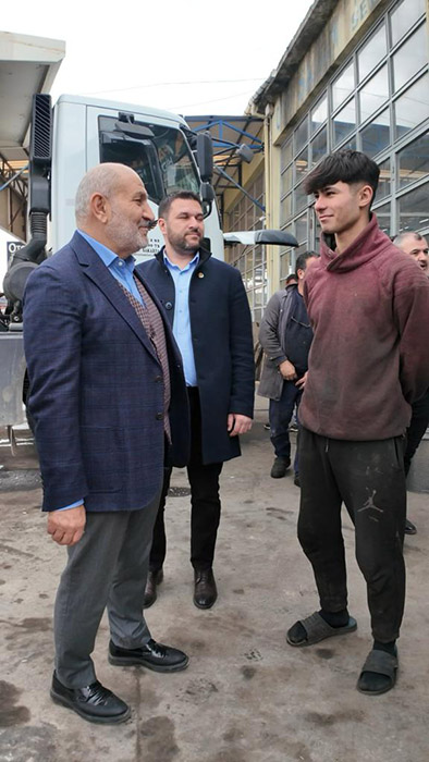 Sanayideki bütün esnafları bir bir gezerek sohbet eden Püsküllü, Esnafların sıkıntılarını taleplerini dinleyerek not aldı, diğer tarafdan Küçük Sanayi sitemizle alakalı çalıştıklarını birçok esnafımızla da istişarede bulunduklarını belirterek,