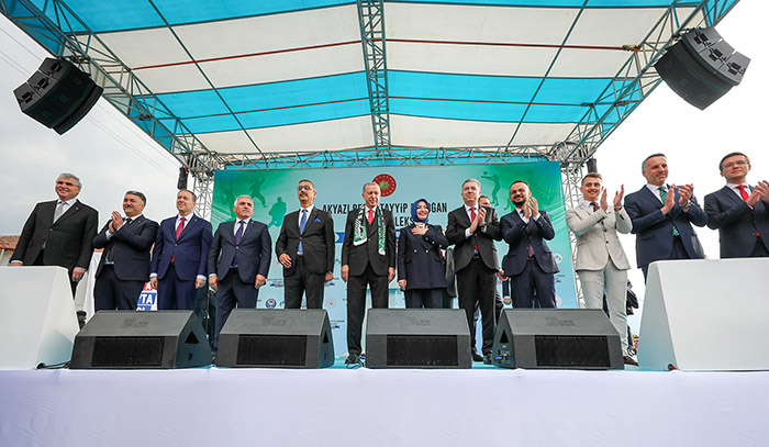 Cumhurbaşkanı Recep Tayyip Erdoğan, Akyazı’da yapımı tamamlanan Recep Tayyip Erdoğan Spor Kompleksinin açılışına katıldı. Akyazı’da on binlerce Sakaryalı ile buluşan Cumhurbaşkanı Erdoğan, Sakarya’da büyük coşku ve heyecanla karşılandı. Açılış töreninde Büyük Birlik Partisi Genel Başkanı Mustafa Destici, Yeniden Refah Partisi Genel Başkanı Dr. Fatih Erbakan, Milli Savunma Bakanı Hulusi Akar, Sağlık Bakanı Fahrettin Koca, Vali Çetin Oktay Kaldırım, AK Parti Genel Başkan Yardımcısı Ali İhsan Yavuz, Büyükşehir Belediye Başkanı Ekrem Yüce, AK Parti İl Başkanı Yunus Tever, milletvekilleri, milletvekili adayları, siyasi partilerin il başkanları, ilçe belediye başkanları, ilçe başkanları yer aldı. Gerçekleştirilen açılışın ardından Cumhurbaşkanı Recep Tayyip Erdoğan, AK Parti Sakarya Milletvekili adaylarını tanıttı.