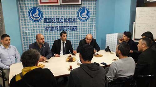 İl Ocak Başkanı Soyhan Sofuoğlu ve Yönetim Kurulu Üyeleri Hendek Ülkü Ocakları Başkanlığında Başkan Süleyman Kalk ve yönetimi ile bir araya geldi. Sohbet havasında geçen ziyarette Hendek Ülkü Ocakları Başkanı ve yönetimi İl Ocak Başkanı Soyhan Sofuoğlu ve beraberindekilere ziyaretlerinden dolayı teşekkür etti.