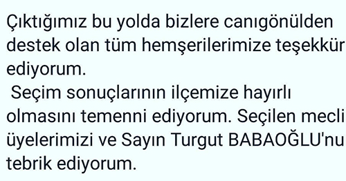 Cumhur İttifakı Ak Parti Hendek Belediye Başkan Adayı Ali Kemal Sofu, Babaoğlu’nu Sosyal Medyadan yaptığı paylaşımla tebrik etti.