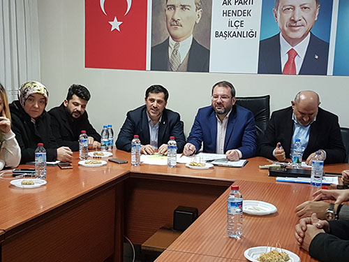 Her hafta Ak Parti Hendek ilçe Başkanı Ali Kemal Sofu Başkanlığında gerçekleşen toplantıya bu hafta Sakarya Milletvekili MKYK üyesi Recep Uncuoğlu, Hendek Belediye Başkanı İrfan Püsküllü ve yardımcıları katıldılar.