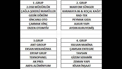 Kahvaltının ardından kuralar çekilerek gruplar belli oldu. 4 Nisan (bugün) başlayacak olan 2.OSB futbol turnuvasında 24 takım yer alacak 4 gruptan oluşuyor.