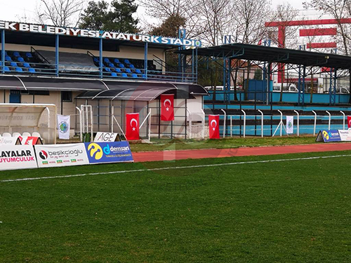 Suriye’nin İdlib kentinde Hain saldırı sonucu Şehit Düşen Mehmetçiklerimizin haberinin gelmesinin ardından Arifiye Kalaycıspor maçı öncesinde Hendek Belediyesi Atatürk stadını Türk Bayrakları ile donattı.