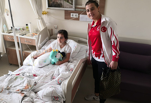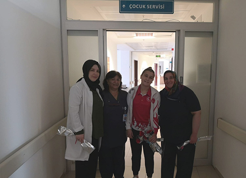 Şampiyon Sporcu Özgenur Avcıl Hendek Devlet Hastanesi Çocuk Servisi Hemşirelerine ve yatan farklı yaş grubundaki çocuklara ve ailelerine karanfil ve hediyeler vererek geçmiş olsun dileklerini iletti. Avcıl Hendek Devlet Hastanesi Başhekimine, Hastanemiz Müdürüne Doktorlarına, Baş Hemşiremize, sağlık çalışanlarına ve tüm personele teşekkür etti ve lütfen sporun içinde kalın diyerek sözlerini tamamladı.
