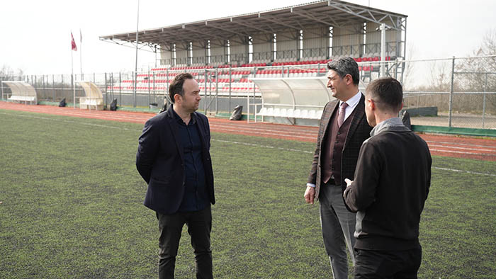 Son olarak Hendek Sentetik Saha ve Spor Salonu’nda incelemelerde bulunarak İlçe Müdüründen tesislerin durumu hakkında bilgi aldı.