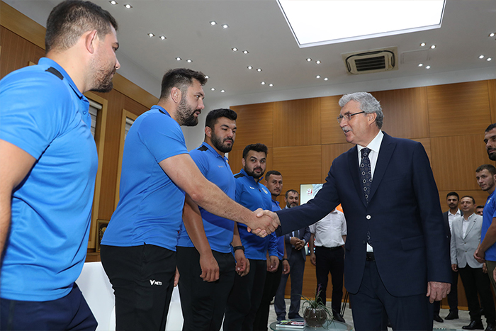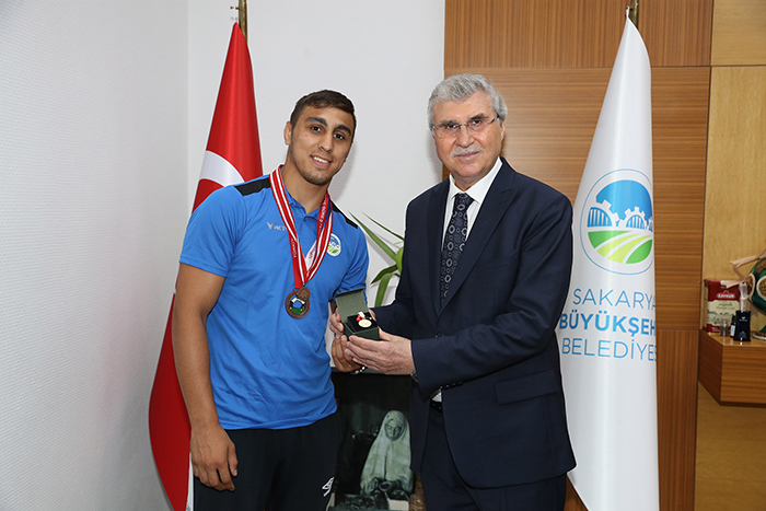 Müsabakalarda büyük bir başarıya imza atarak “En genç Başpehlivan” unvanını kazanan Serdar Yıldırım, Başkan Yüce’ye, gelecek müsabakalarda altın kemer sözü verdi. Oldukça sıcak bir ortamda gerçekleşen ziyarette, 3. olarak, büyük orta büyük boyuna yükselen Ensar Bıyık da gelecek yıl çok daha önemli başarılara imza atacaklarını ifade etti.