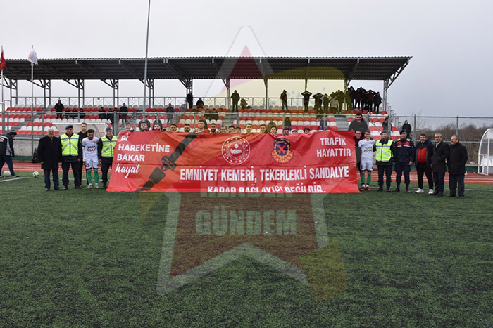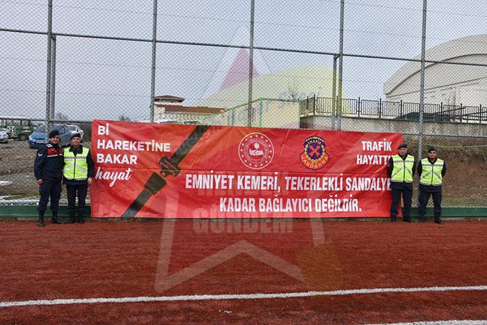 Jandarma Trafik ekipleri Futbolcularla birlikte pankart açıp Emniyet kemerinin ne kadar önemli olduğunu bir kez daha hatırlatılar.