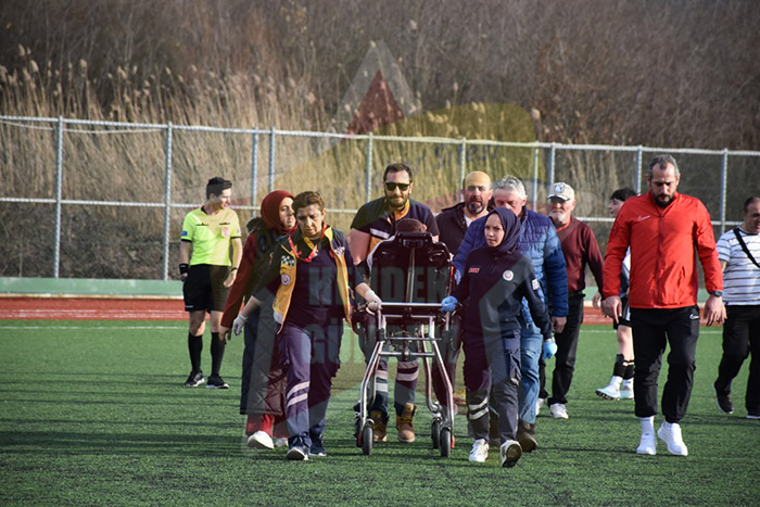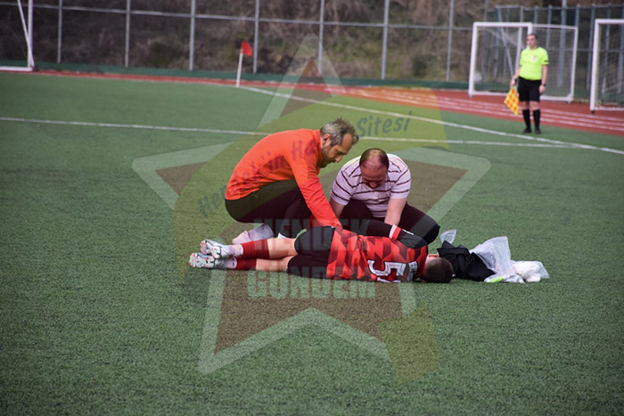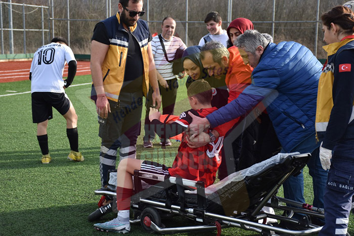 19.Dakikada bir pozisyon sonrası Yenimahallespor’dan Berke yerde kaldı Sağlıkçının ilk müdahalesi sonrası kolu kırldığı anlaşıldı.