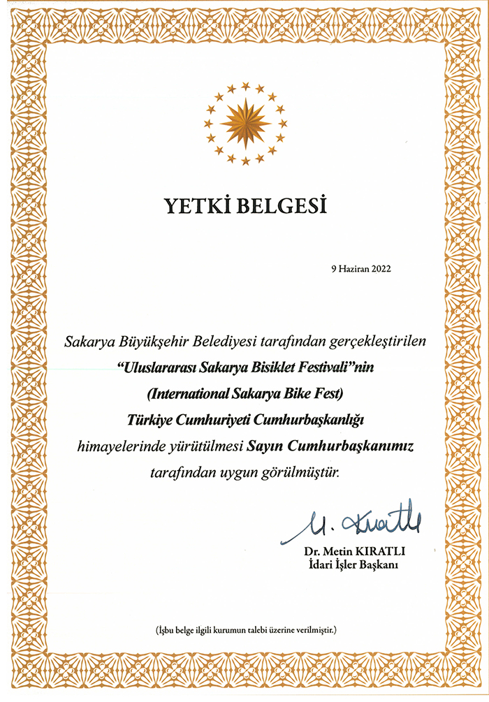 Büyükşehir Belediye Başkanı Ekrem Yüce’nin öncülüğünde büyük bir özveriyle hazırlanan "Sakarya Uluslararası Bisiklet Festivali" projesi Cumhurbaşkanı Recep Tayyip Erdoğan tarafından onaylandı.