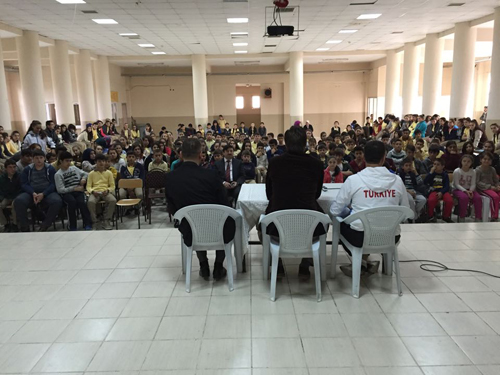 Şehit Ali Gaffar Okkan Ortaokulundaki söyleşiye Hendek Gençlik Hizmetleri ve Spor İlçe Müdürü Sayın Feyzullah köstereli, İlçe Milli Eğitim Müdürü Sayın Sabri Doğan, Türkiye Karate Federasyonu Menajeri Sayın Hikmet Şaha ve Hendek Belediyesi Karate Takımı antrenörlerinden Sayın Soner Açıkyol’ un katıldığı söyleşiye sınava girecek çocukların ilgisi oldukça yüksekti.