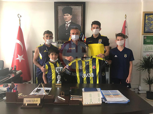 Baysel ve Fenerbahçeli oyuncular Başsavcı’yı ziyaretin ardından Hendek İlçe Emniyet Müdürü Şevket İlhan’ı da makamında ziyaret ederek imzalı forma hediye ettiler.