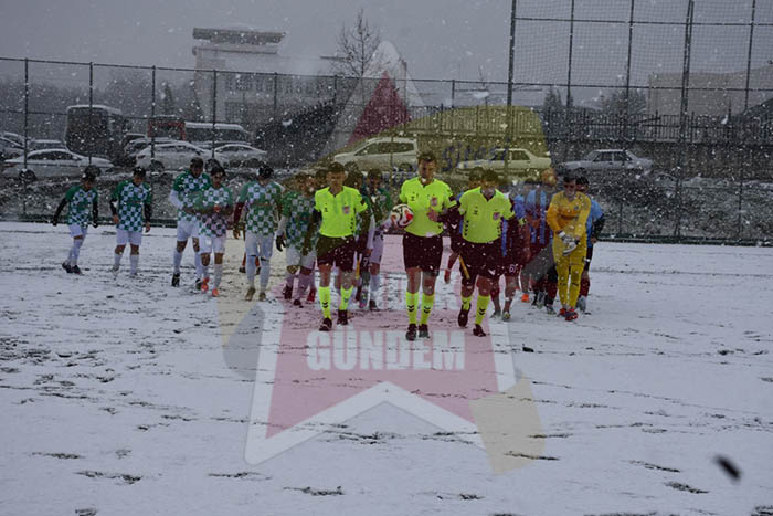 Maç öncesi başlayan yoğun kar yağışı saha çizgilerini kapayınca Hem saha Hemde takım spor ve yöneticilerinin üstün gayreti ile saha maçın oynanacağı şekle getirildi.