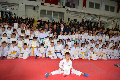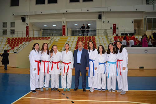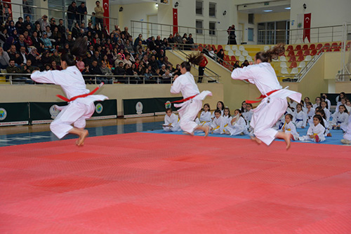Programın açılış konuşmasını Türkiye Karate Federasyonu As Başkanı Meydan Kobaş yaptı. Kobaş konuşmasında “Gördüğüm manzaradan dolayı çok mutluyum. Daha önceden büyükşehirlerde bile böyle bir potansiyeli yakalamazken, şuanda böyle bir potansiyelin içerisinde olmak bana mutluluk ve gurur vermiştir. Burada emeği geçen antrenörümüzNurkan Kayacık ve yardımcılarına teşekkür ediyorum. Bu sporcularımız bizim aynamızdır. Velilerimizin burada olmaları bizi birkez daha mutlu etmiştir. Çünkü bu çocuklarımız bizim yarınlarımızdır. Bizlerin ve sizlerin yerini dolduracak nesillerdir. Bunları ne kadar aydın yetiştirirsek bu ilçeye bu ile ve bu ülkeye faydalı olacaklardır. Spor, çocuklarımızın okul başarılarını da olumlu etkiliyor. Sporcularımıza okul ve spor hayatlarında başarılar diliyorum “ dedi.