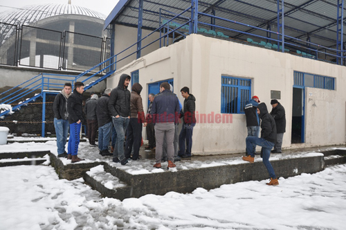 Karla kaplı olan saha zemininin futbol oynanmasına müsait olmadığı gerekçesi ile maçın hakemi her iki takımada maçı tatil ettiğini iletti.