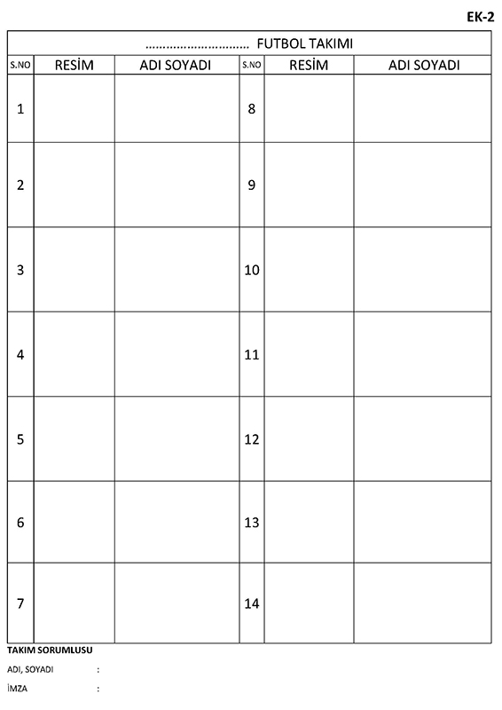 - Takım kadro listesi ( RESİMLİ ) Ek – 2