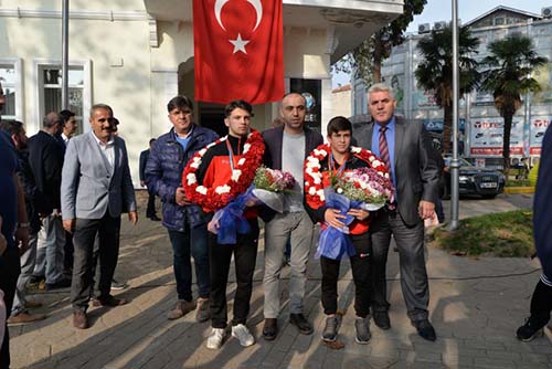 Yapılan Takı merasiminden sonra Slovenya da 50 kiloda Mükremin Aktaş balkan Şampiyonu 58 kiloda Serhat Kırık balkan ikincisi için Hendek Belediyesi önünde yapılan karşılama ve ödül töreni sona erdi.